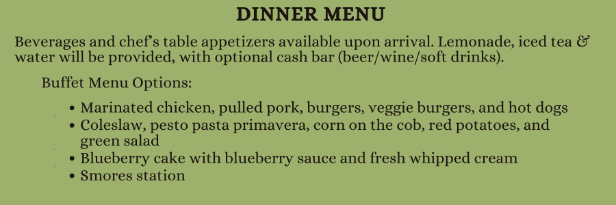 7-8pm Continued socializing, Drinks, Smore Station & Lawn Games