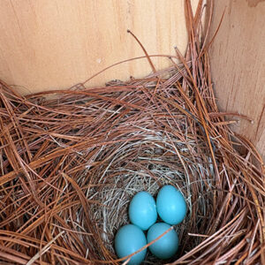 Despite some cooler-than-usual weather, spring bird breeding activity is off to a good start on the Boothbay peninsula. Eastern Bluebirds have not only started building nests on most of our land trust preserves, but they also have already laid eggs in at least four of those nests. Singing Meadows is currently in the lead with four nests, one of which already has four eggs. Eggs are anticipated in the other three nests in the near term.